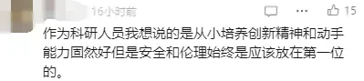 同年,另一名北京家长的孩子也因“网红实验”受了伤,她为孩子购买了一套号称能做几百种实验的装置,但由于该装置包装简陋,孩子不慎弄破了其中一袋材料,用水冲洗后皮肤出现红肿疼痛的现象。