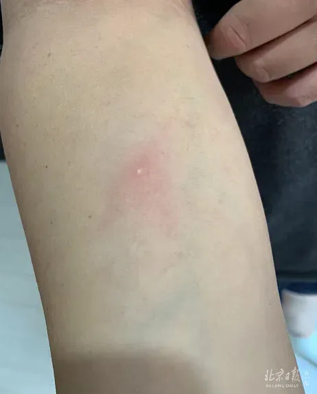 由于药瓶密封不严,“大象药水”在拆封前就漏得到处都是。不慎沾上药水后,测试人员的手臂出现了刺痛,接触药水的部位渐渐被腐蚀变成白色。在用大量清水冲洗约十几分钟后,手臂上的“白点”转成红色并凸出肿起,直至数小时后才慢慢恢复正常。